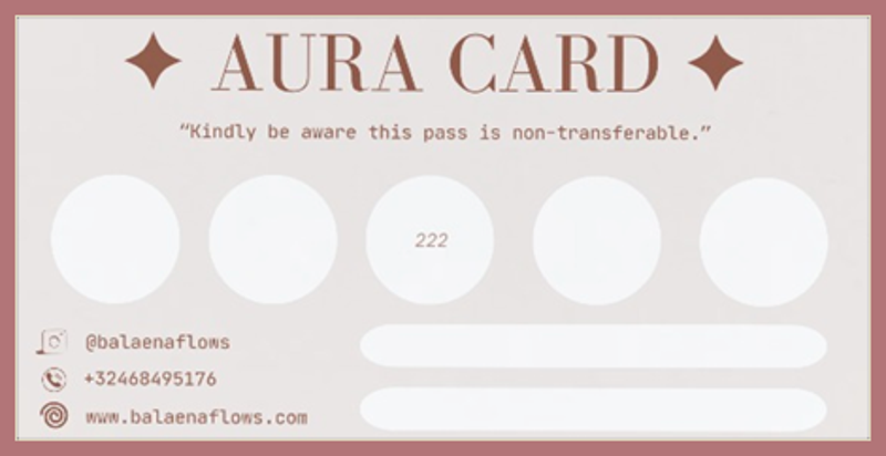"Embrace your ‘AURA CARD’ with 5 classes, and gift yourself and your closest friend a free ritual class to savor together."